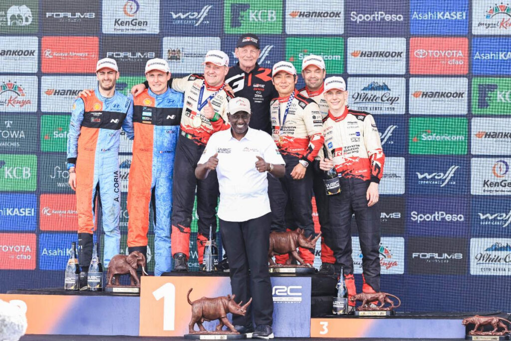 Le président du Kenya, William Ruto, prend une photo avec les pilotes après la...