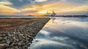 Les rives de la mer Rouge près du port de Djibouti lors d’un beau...