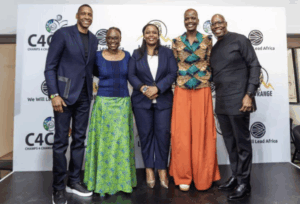 L-R: Masai Ujiri, Memuna Williams, Clare Akamanzi, Clarisse Machanguana and Victor Williams JOHANNESBOURG, Afrique...